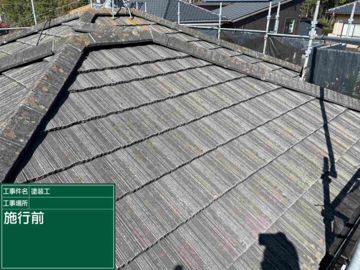 石岡市:表面塗膜が落ちてボロボロのモニエル瓦、遮熱効果のあるスーパーシャネツサーモで塗り替えて耐久性も快適性も🆙‼️