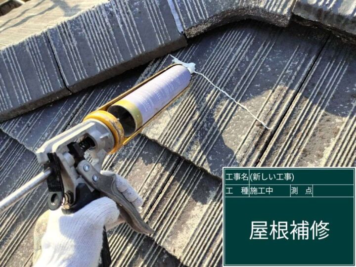 亀裂から雨水が浸透して雨漏りにつながることもあるので、モニエル瓦の割れをしっかり補修します👷♂️