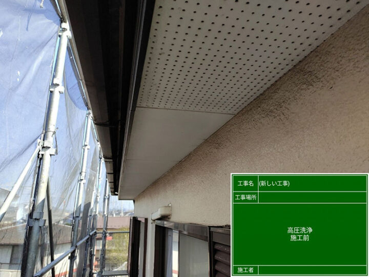 屋根の軒先の裏面に取り付けるボードの事で、こちらも、水圧を調整しながら丁寧に施工していきます。
