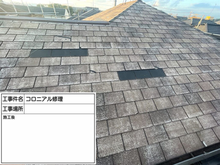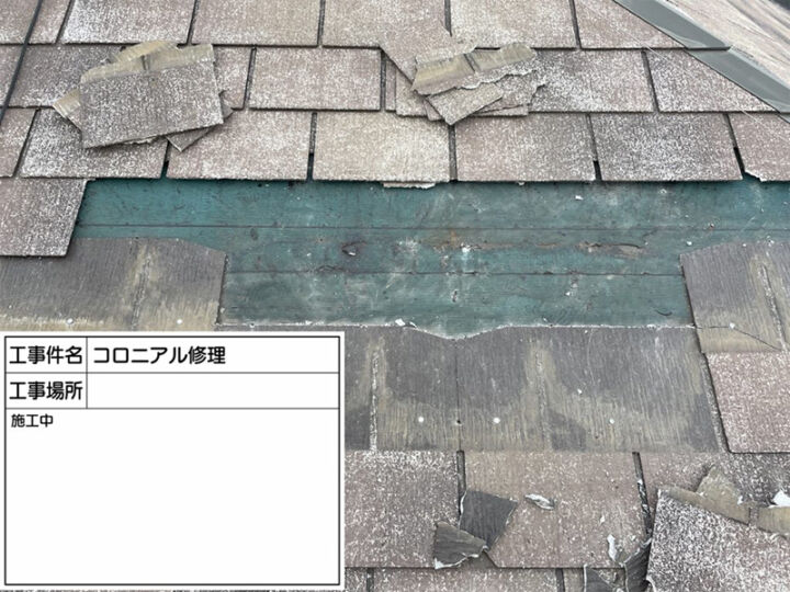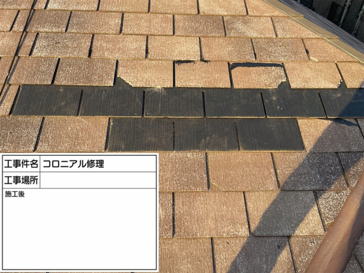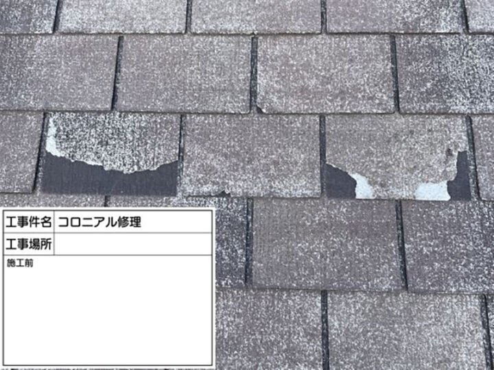 今回のお客様宅の屋根は、一般的な住宅によく使われている、コロニアルという屋根材です。
