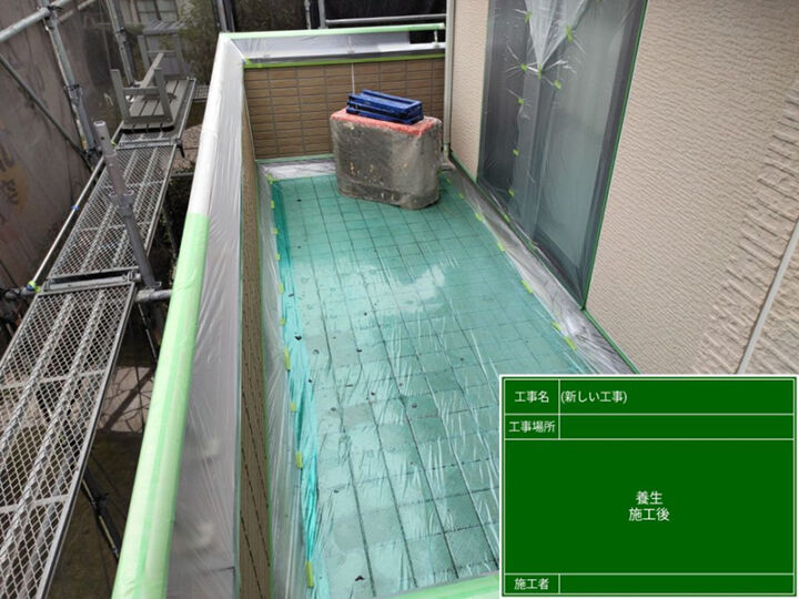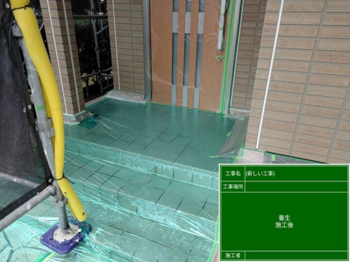 塗装しない箇所や汚してはいけない箇所を保護するために、養生工事を行います。