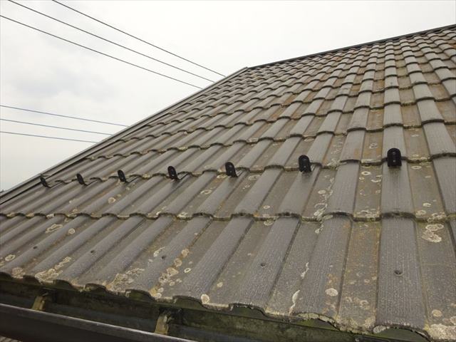 モニエル瓦の屋根瓦には全体的に苔が生えていました。
