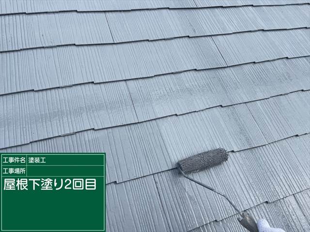 スレート屋根の下塗り塗装、2回目の塗装が完了しました!