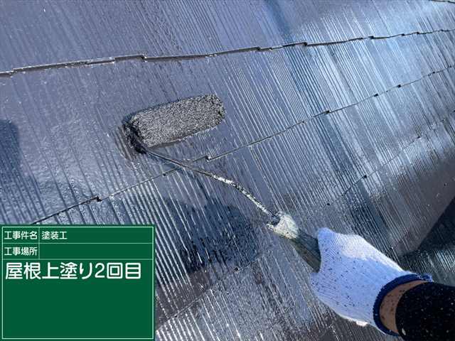 乾燥を確認して、翌日にスレート屋根塗装の上塗り2回目をおこないました。