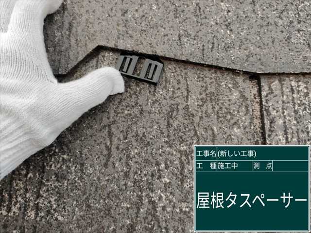 屋根塗装をおこなう前に、タスペーサーを挿入していきます。