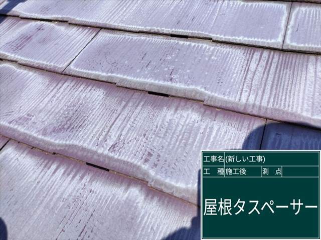 スレート屋根の縁切りは、塗膜をカットする方法ではなく、タスペーサーという道具を使っておこないます。