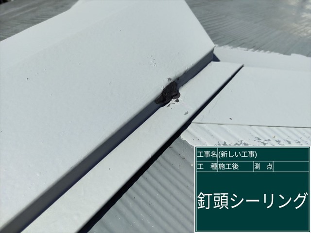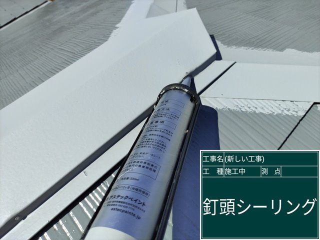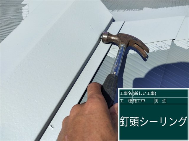 釘が抜けると棟板金が落ちたり飛んでいく可能性があるため、屋根塗装時に補修をおこないます。