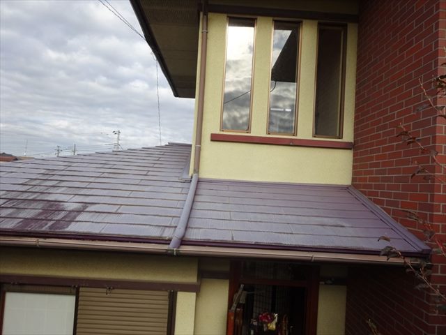 下屋根も主屋根同様に、色褪せて劣化しています。
