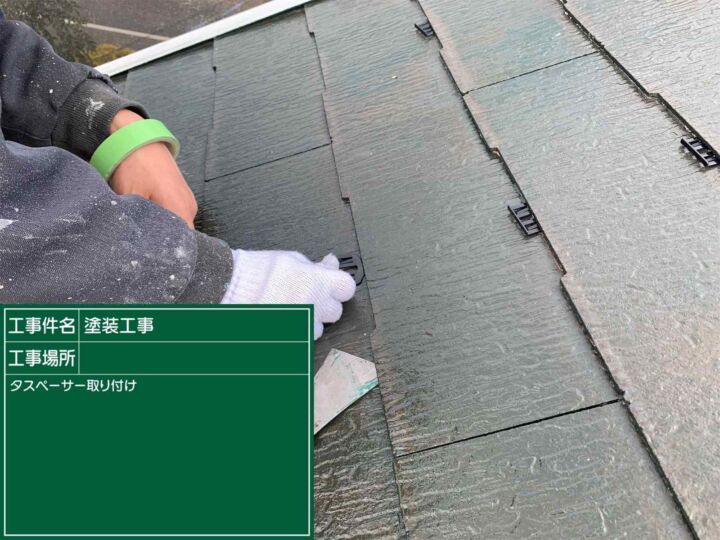 まずタスペーサーを設置してコロニアル屋根の隙間を確保し、屋根内部の雨水の逃げ道を作りました✨️