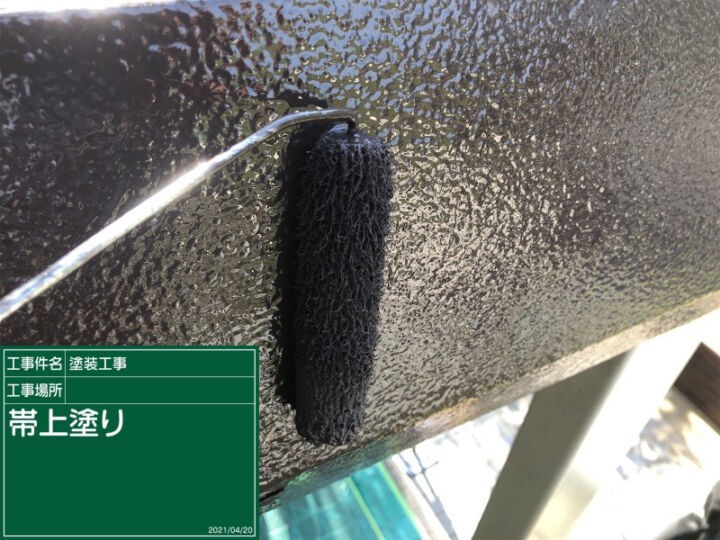 かすみがうら市でおこなった帯塗装上塗りの様子です。