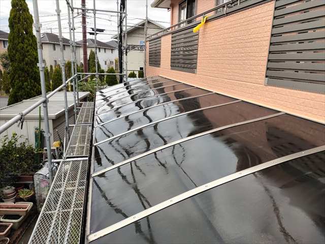 霞美装では足場を撤去する前に、窓などの拭き上げをサービスでおこなっています。