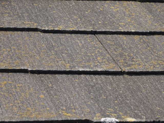 築10年で塗装に適した周期ではありましたが、スレート屋根は傷んでおり、あちこちに細いヒビ割れが、端部には苔が生えた跡がありました。