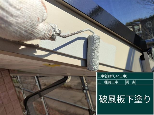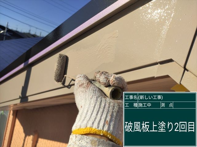 下塗り後には上塗り塗料を2回に分けて塗布して、破風板の塗装は完了です。