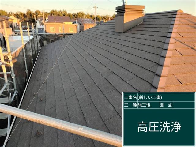 小美玉市現地の屋根塗装、続いてスレート屋根の下塗りです。