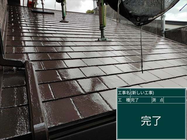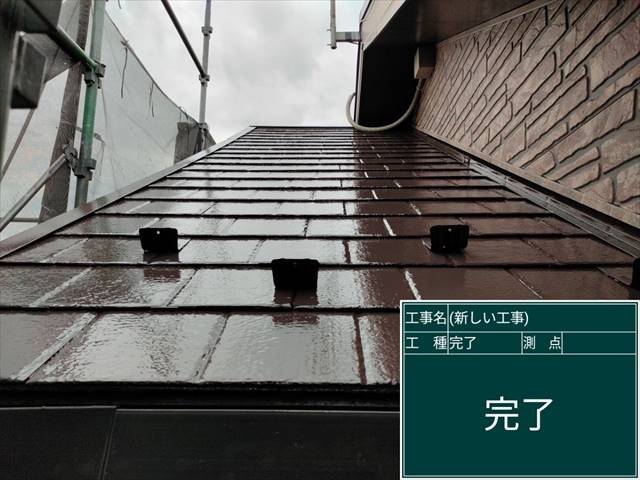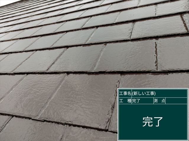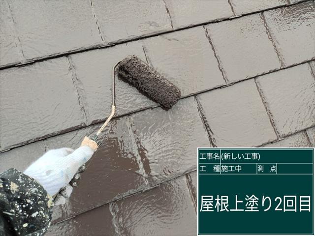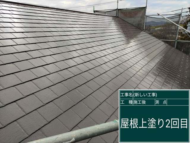 スレート屋根の塗装、2回目の上塗りをおこないます。