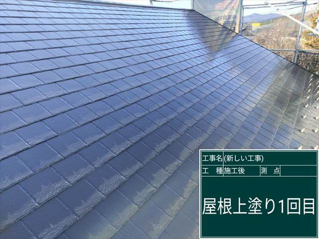 スレート屋根の上塗り塗装1回目!