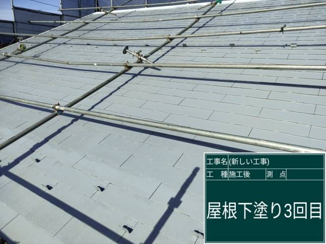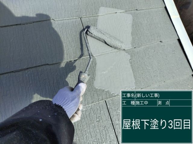 小美玉市の屋根塗装、下塗りを3回おこなって下塗りが終わりました!