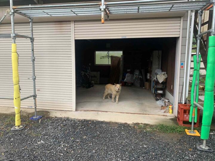 上塗りの施工のために翌日現場に向かうとかわいいお出迎えが🐶🐾
