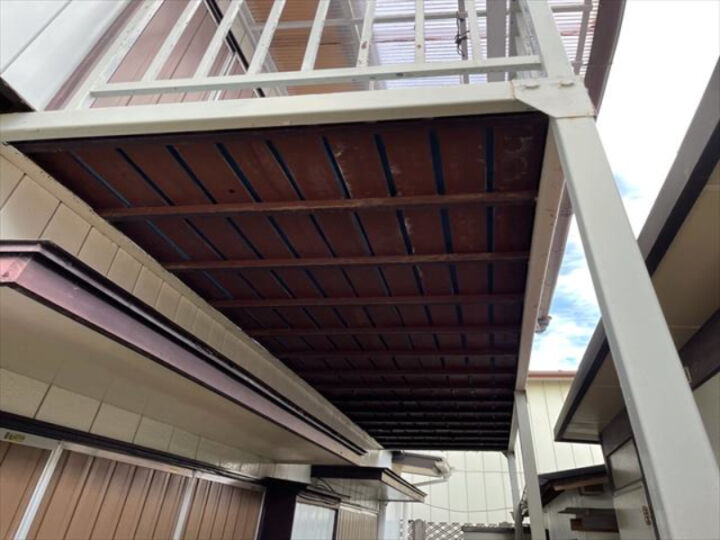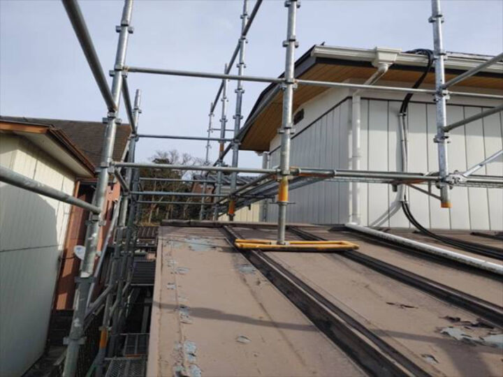 板金屋根よりも痛みがあったためケレン後は素地が見えるほどでした。