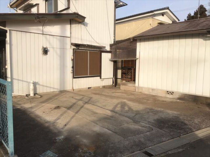 敷地内には倉庫やカーポートがあり密集した感じのある外観でした。