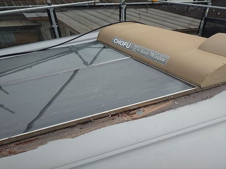 かなり古いものなので撤去して、屋根全体を塗装することにしました。