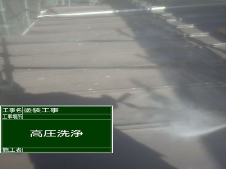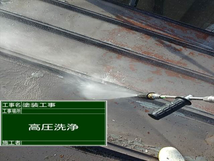 塗り替えの前には必ず高圧洗浄をおこない、汚れや苔を落とします。