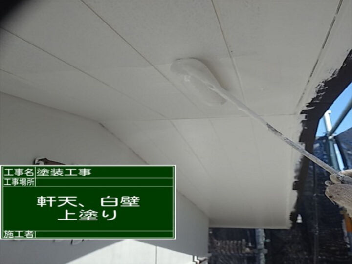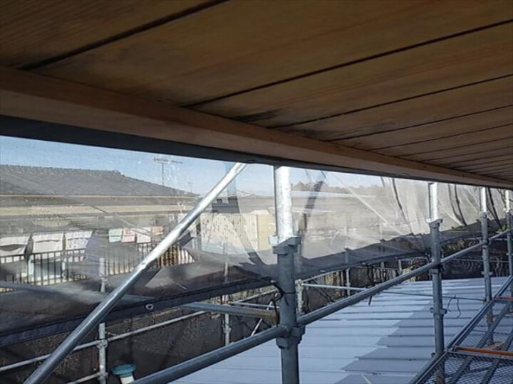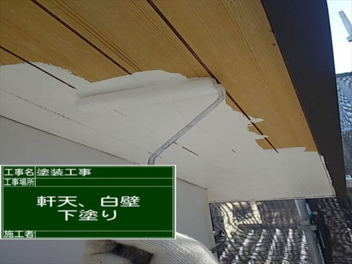 もともとは木目調の軒天でしたが、ホワイトで塗装することになりました。