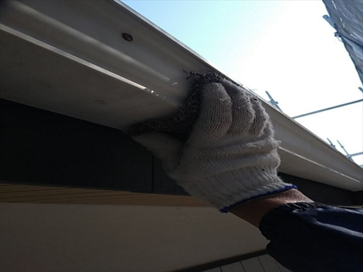 雨樋は塗装されていませんが、塗料の密着性を上げるためにわざと細かいキズをつけていきます。