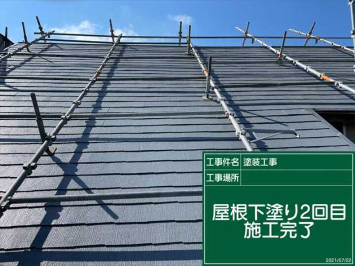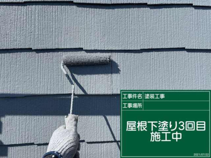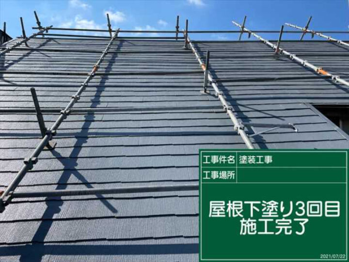 3回目の下塗りです。既定の時間をおき、きちんと乾燥させてから塗装を開始しました。下塗りを3回おこなったことで、塗膜が厚みを持つことで、丈夫になります。劣化が進んでいたので、3度の塗り重ねが必要でした。