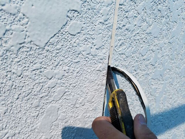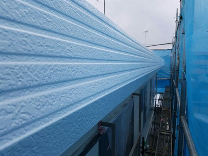 ネットがかかっているので、青く反射していますが、本来は、白系の上塗り材です。