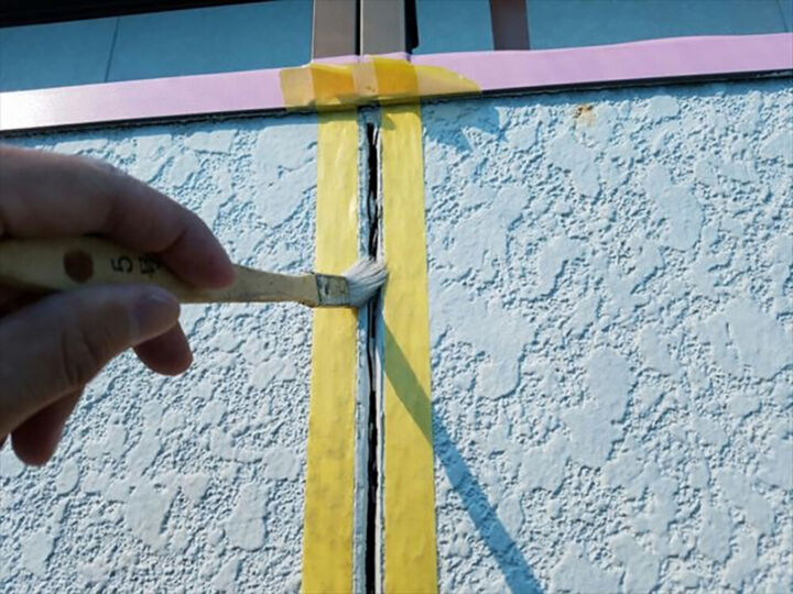 プライマーが乾いたら、コーキングを打ち込んで行きます。