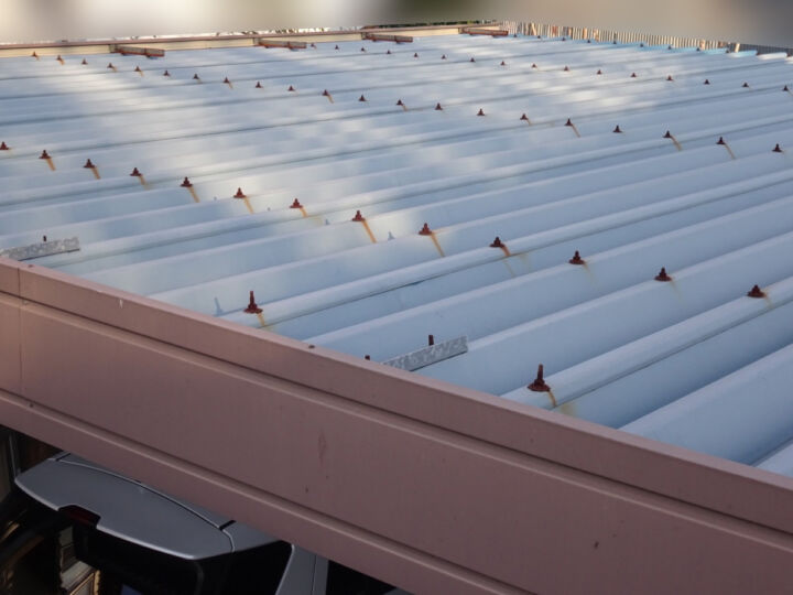 土浦市:錆びたボルト!倉庫の金属屋根を塗装!バリュー工法&遮熱塗装でしっかり屋根を守ります!