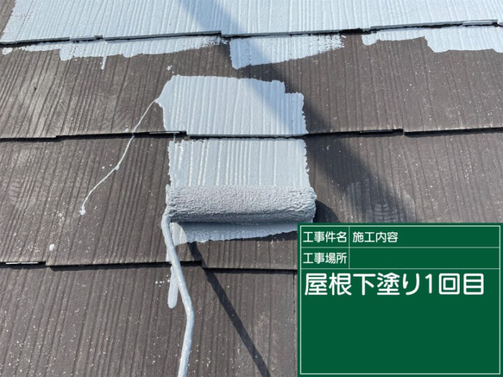 タスペーサーを挿入して雨漏り予防をしたら、屋根塗装の下塗りをおこないます。