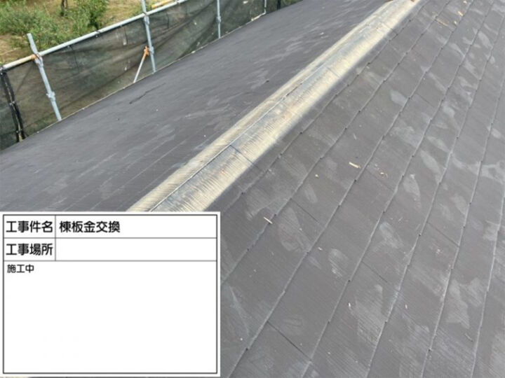 屋根のてっぺんにある棟板金も傷んでいたので交換します。
