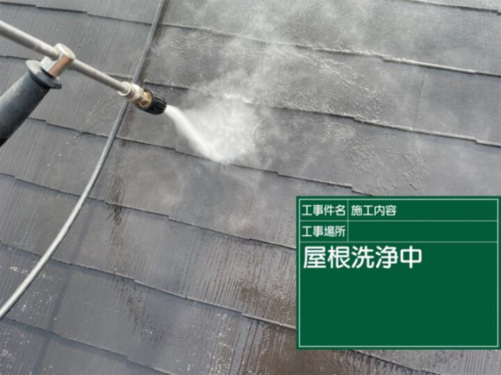 屋根から順番に洗い流します。