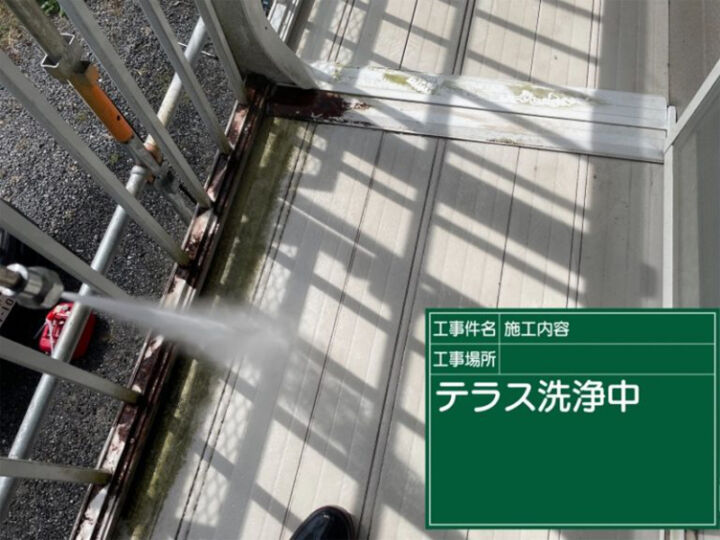 続いて高圧洗浄で現場の汚れを落としていきます。