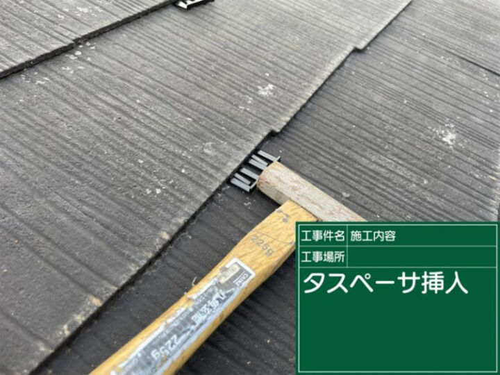 コロニアル屋根を塗装する前にタスペーサーという縁切器具を設置していきます。