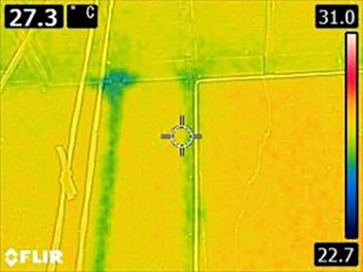 サーモカメラで撮影すると、漏水箇所がはっきりわかりました。