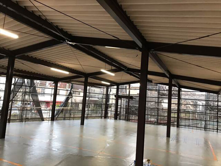 土浦市|鉄骨2階建て駐輪場の塗装リフォーム!ボロボロだった外観が見違えるほど綺麗になりました