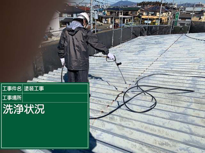 まずは高圧洗浄で汚れを落としていく作業です。