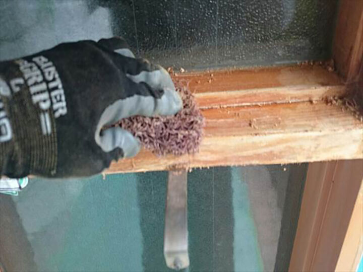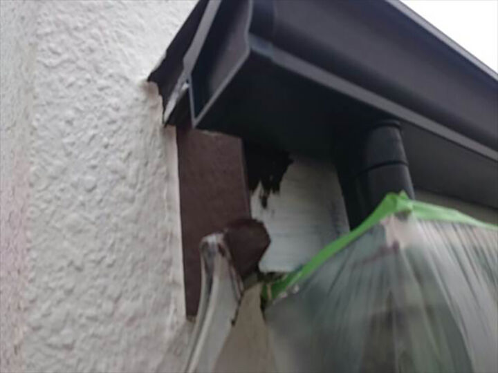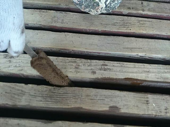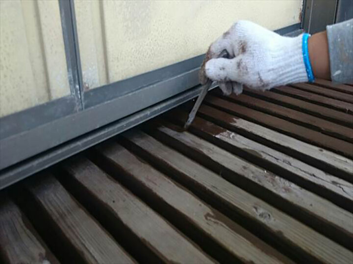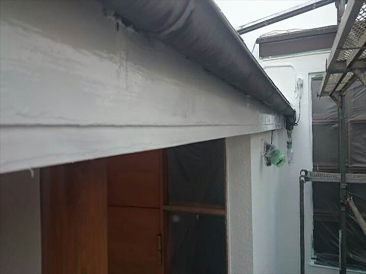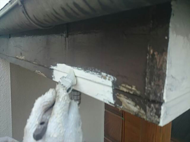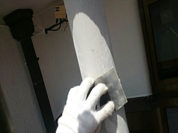 高圧洗浄後、塗装前にシリコンやパテなどで補修を行いました。