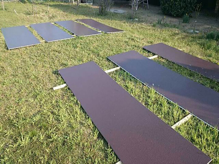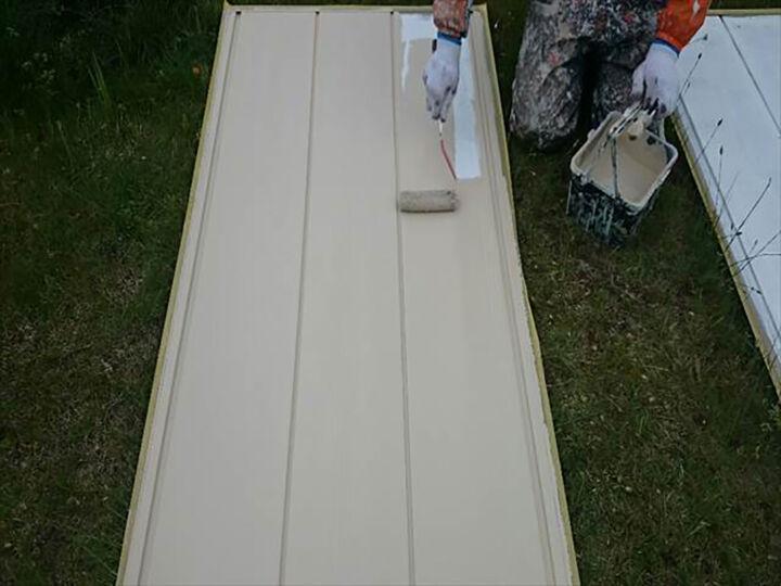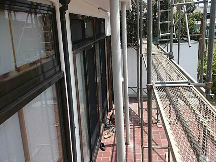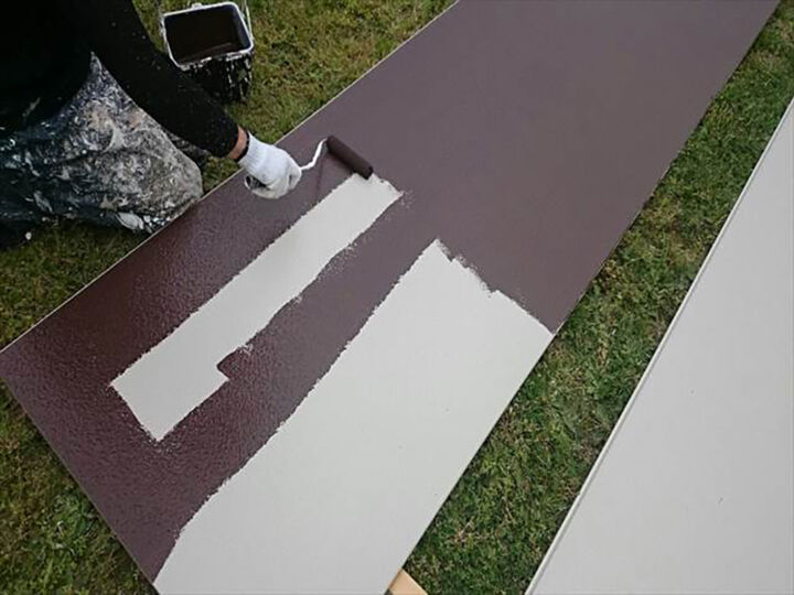- 《屋根》アクリル系シリコン樹脂(下塗り)、GAINA(上塗り) 《トタン屋根》エポキシ系サビ止め(下塗り)、サーモブロック(上塗り) 《外壁》ウレタン(下地補修)、サーモブロック(上塗り) 《軒天》アクリル系樹脂 《破風板》エポキシ系樹脂(下塗り)、弱溶剤シリコン(上塗り) 《雨戸》エポキシ系サビ止め(下塗り)、弱溶剤シリコン(上塗り) 《基礎》ポリマーセメント 《木部》エポキシ系(下塗り)、弱溶剤シリコン(上塗り)