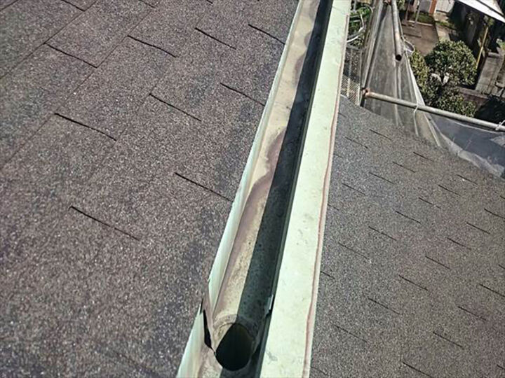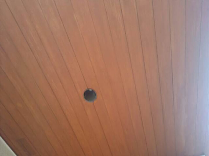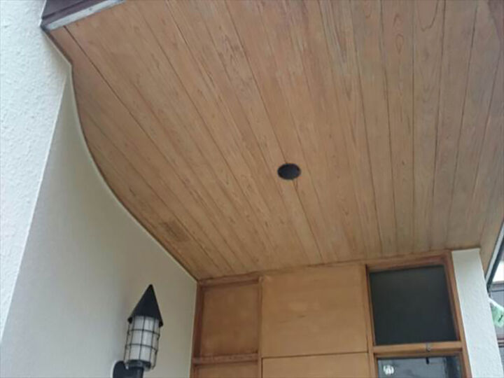 木部の軒天には、雨水の侵入があり雨染みがみられました。