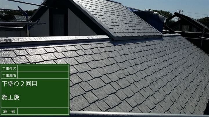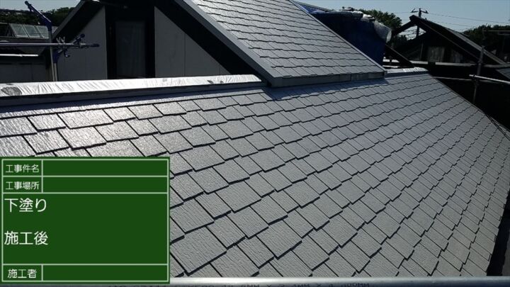 防水性が失われると、雨水を吸い込みますね。 それと同様、傷んだ屋根材は塗料も吸い込んでしまうのです。 吸い込まれた塗料ではしっかりとした塗膜を形成することは難しいため、下塗りを塗り重ねて防水性をあげていきます。 塗り重ねることにより、塗膜の厚みを出すことが出来、上塗り塗料がきちんとした性能を発揮してくれます。