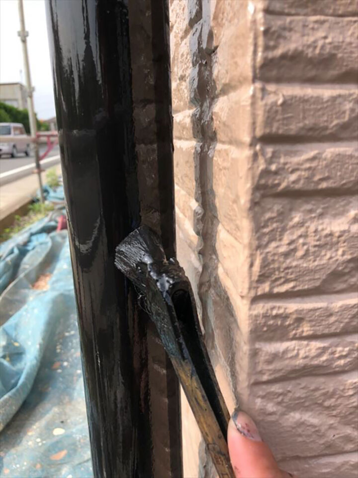 細か部分はハケや細かい部分用の道具を使い施工いたしました。乾燥後二回目も施工し完了になりま