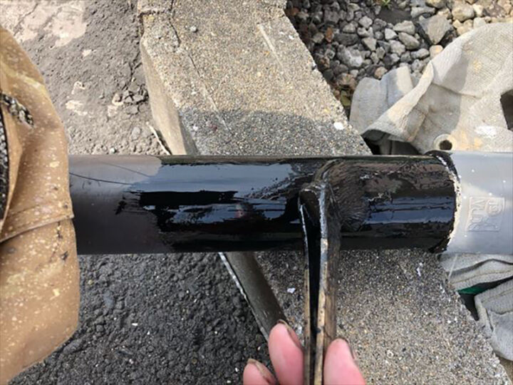 高所での作業と水の作業で足元が滑りやすくなっていますので十分に注意し施工していきます。