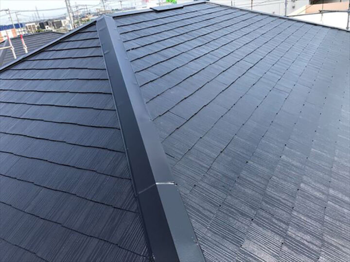軒天にはつや消しで防カビの塗料を使用し施工いたしました。軒天も二回施工し細かい部分はハケで施工しました。